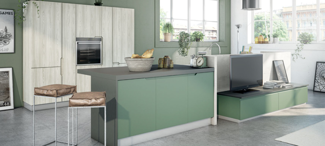 SUPERFICI, FORME E MATERIALI, ESPRESSIONE DI UNO STILE SENZA TEMPO DOVE LE MODE CEDONO IL PASSO A SUGGESTIONI INFORMALI; LA POLIEDRICITA’ DELLE FINITURE OFFRE L’OCCASIONE DI CREARE, TRA REGOLARITÀ E PIACEVOLI CONTRASTI, NUOVI SPAZI PER VIVERE LA CUCINA.